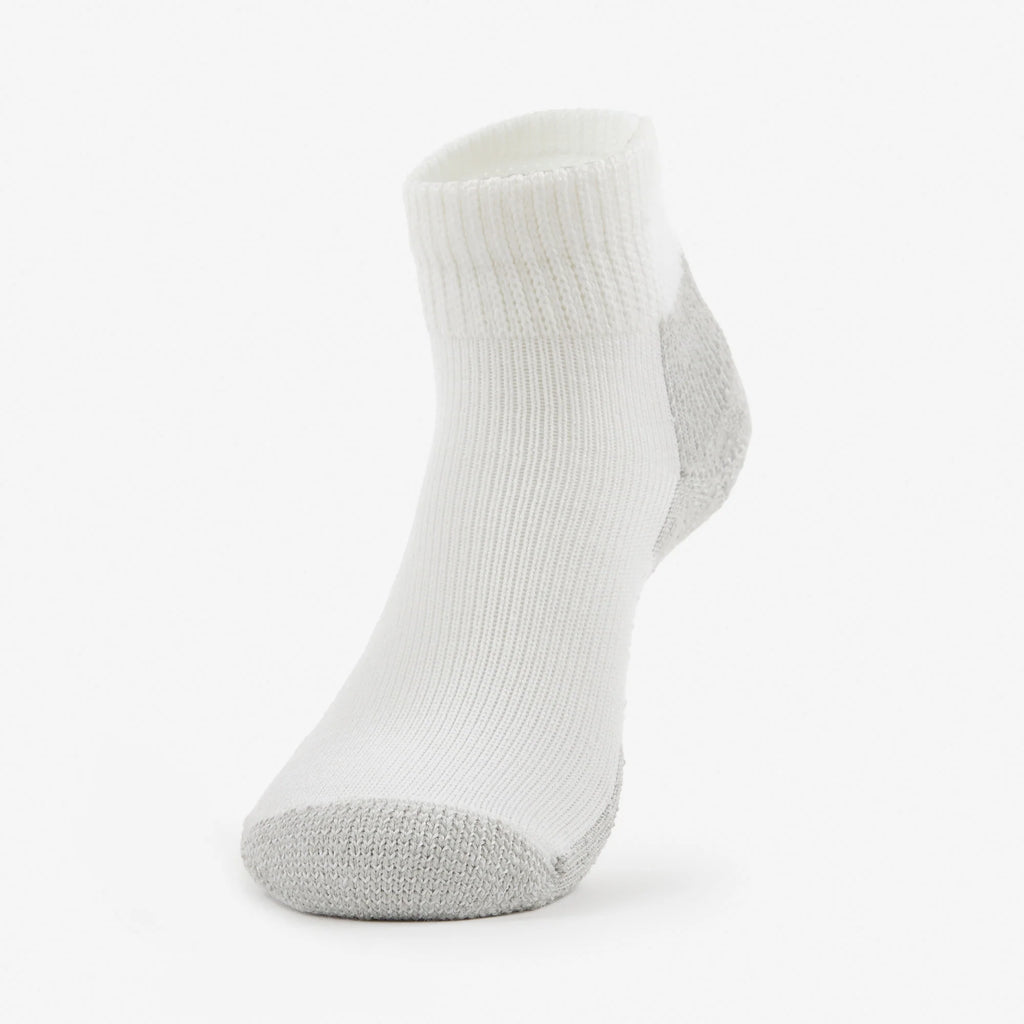 Thick running socks in a mini crew made with Thorlo's very own moisture management system - Thor-lon. Designed to allow you to go the full mile on all terrains with the benefits of greater shock absorption.