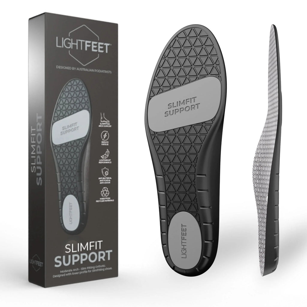 Introducing the Lightfeet Slimfit Support Orthotic Insoles, expertly designed by Australian podiatrists to provide exceptional support, fit, and comfort for slim-fitting footwear and feet.